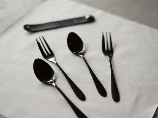 新潟県三条市で約65年にわたって培われた金属表面処理のノウハウをもとに、ステンレスをまるで布のように黒く染め上げる“黒染め”技術を活用。光沢のある黒、マットな黒——素材本来の質感を活かしながら仕上げられた黒は、均一ではないからこそ豊かで、味わい深い表情を持ちます。