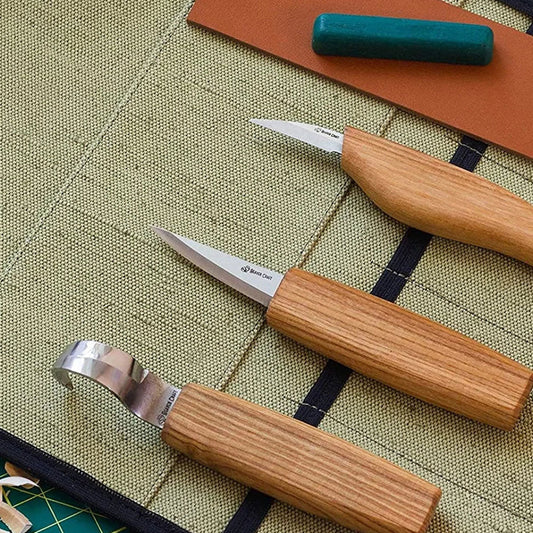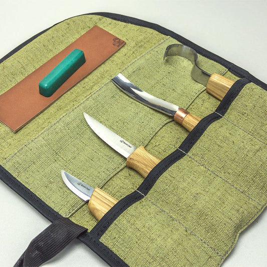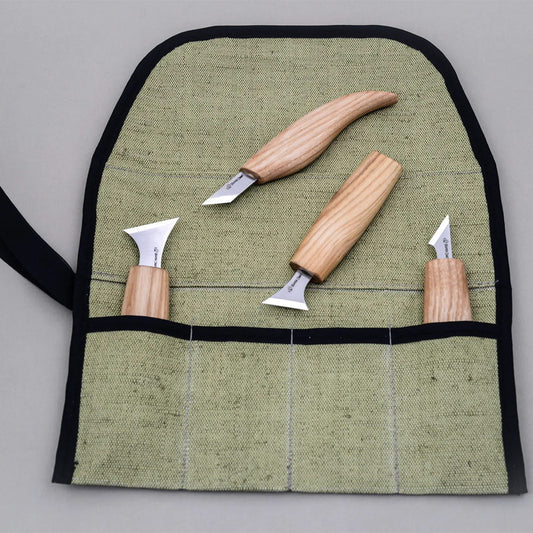 ビーバークラフト チップウッドカービングナイフセット Beaver Craft S06 Chip Carving Knives Set (3 knives in roll + accessories)