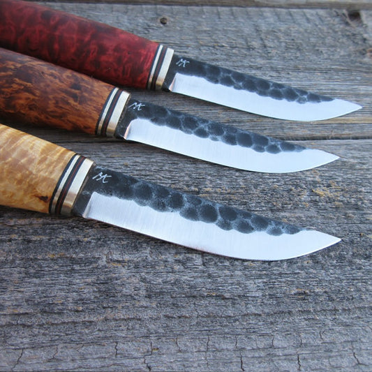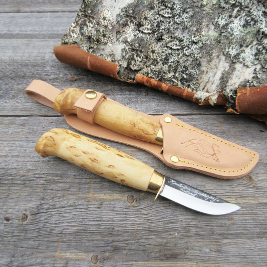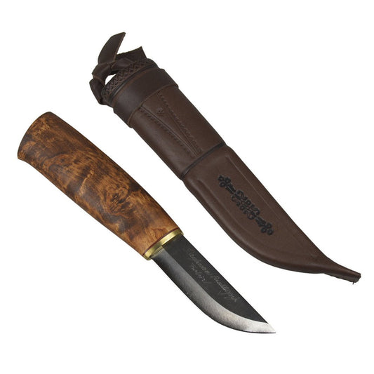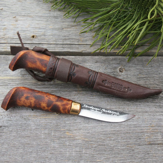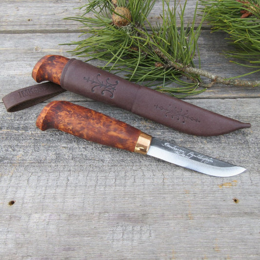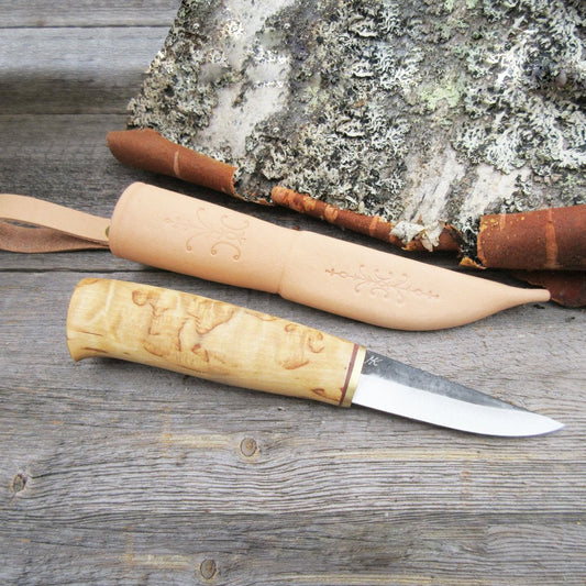 ブッシュクラフトの聖地フィンランドのプーッコ(ナイフ)ブランド。全てがよく出来た伝統的な本格プーッコであることは間違いなく、それでいて安価で使いやすい、ブッシュクラフトに最適なコスパに優れたブランドです。同社のプーッコには、職人の鍛造ブレードと量産ブレードの両方があり、それらのブレードにカウハバの職人がハンドルを制作し、シースを制作して製品としています。量産ブレードのプーッコはもちろん安価ですが、それも素晴らしい切れ味を持っており、優れたコスパを実現しています。鍛造ブレードは少々高価になりますが、鍛造ゆえの切れ味、釼持、味わいは特筆すべきものがあります。