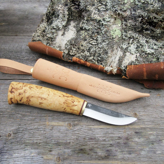 ブッシュクラフトの聖地フィンランドのプーッコ(ナイフ)ブランド。全てがよく出来た伝統的な本格プーッコであることは間違いなく、それでいて安価で使いやすい、ブッシュクラフトに最適なコスパに優れたブランドです。同社のプーッコには、職人の鍛造ブレードと量産ブレードの両方があり、それらのブレードにカウハバの職人がハンドルを制作し、シースを制作して製品としています。量産ブレードのプーッコはもちろん安価ですが、それも素晴らしい切れ味を持っており、優れたコスパを実現しています。鍛造ブレードは少々高価になりますが、鍛造ゆえの切れ味、釼持、味わいは特筆すべきものがあります。