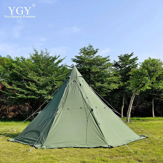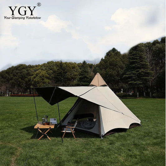 YGY ダブルレイヤーグランピング インスタントセットアップテント ピラミッドテント 4-6人用 防水 ファミリーテント 4シーズン ティピ