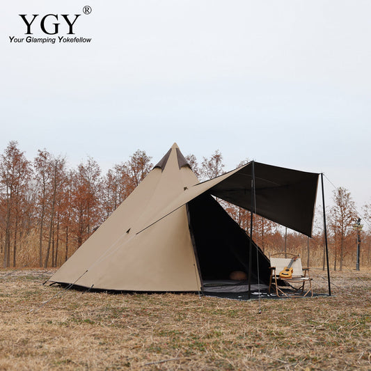 YGY TCコットンピラミッドテント ホットティピーテント ストーブジャックウィンドウ付き 防風スノースカート 4シーズンティピ