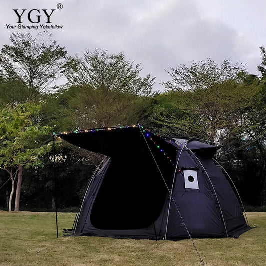 YGY ドームテント ストーブジャック付き 6-8人用 ファミリーテント ブラックPUコーティング