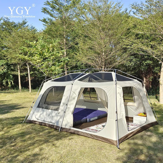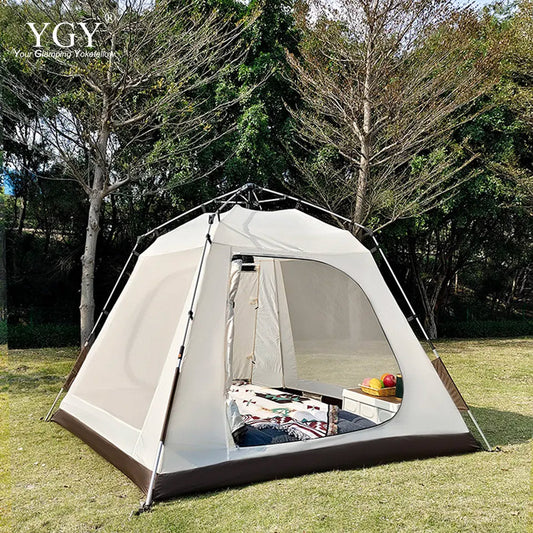 YGY インスタントキャビンテント 全自動ポータブル折りたたみテント ファミリーテント 簡単セットアップ 防水防風 ダブルウォール