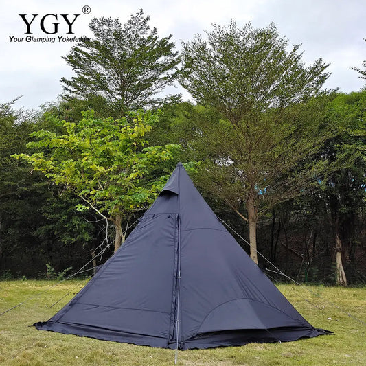 YGY ホットテント ストーブジャック付き 4人用 ティピーテント ブラックPUコーティング5000mm 150Dオックスフォード ピラミッドテント