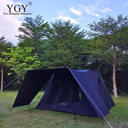 YGY ハットテント 4-6人用 ロッジ型テント ブラックPuコーティング/シルバーコーティング オックスフォード生地 2層キャビンテント