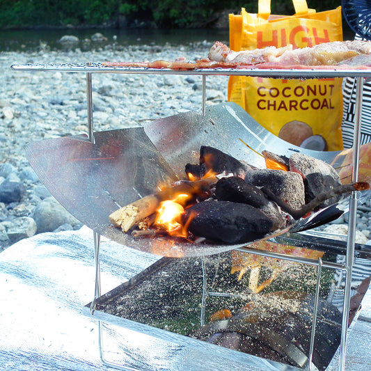 Spending time with loved ones under the blue sky and eating a meal. Isn't it such a fun time that you want to high-five? HIGH FIVE COCONUT CHARCOAL was born to propose a new way to enjoy BBQ through the wonderful Japanese BBQ culture. Because we play in nature, we want people to know the importance of nature and to be kind to nature. This feeling is what HIGH FIVE is filled with.