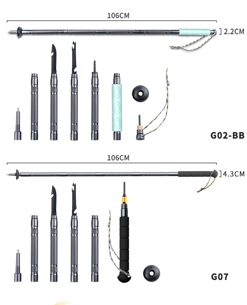 高品質アルミ合金を使用した軽量設計で、登山やキャンプ、ハイキング、アウトドア探索に最適。折りたたみ式で携帯性に優れ、セルフディフェンス用途としても安心の一本です。