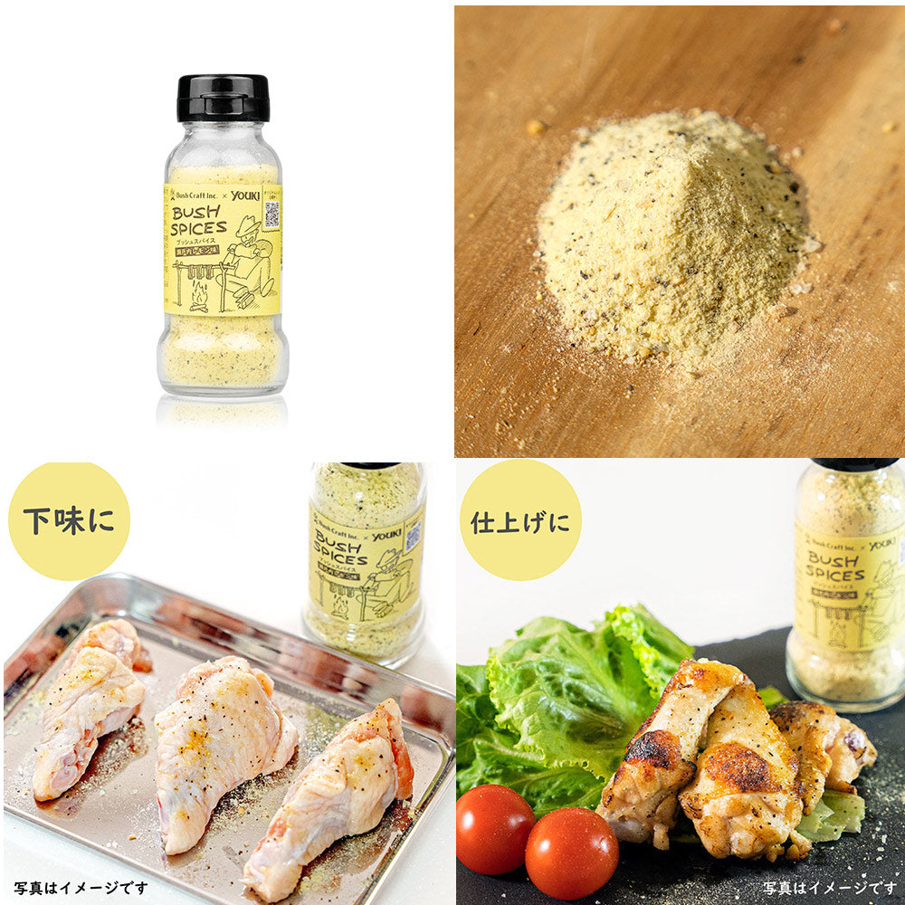 Outdoor and bushcraft specialist Bush Craft Inc. and the king of ingredients and seasonings, YOUKI Foods, have teamed up to create outdoor spices! A Japanese-style spice made with bonito stock and an original spice with a refreshing Setouchi lemon flavor.