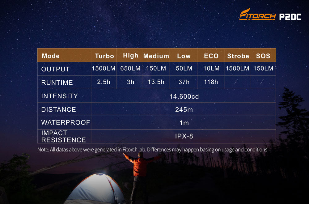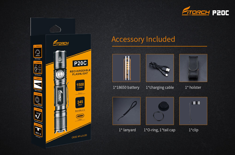 Fitorch P20C FLASHLIGHT 1500LUMENS Fitorch Flashlight High-performance flashlight 1500 lumen LED
