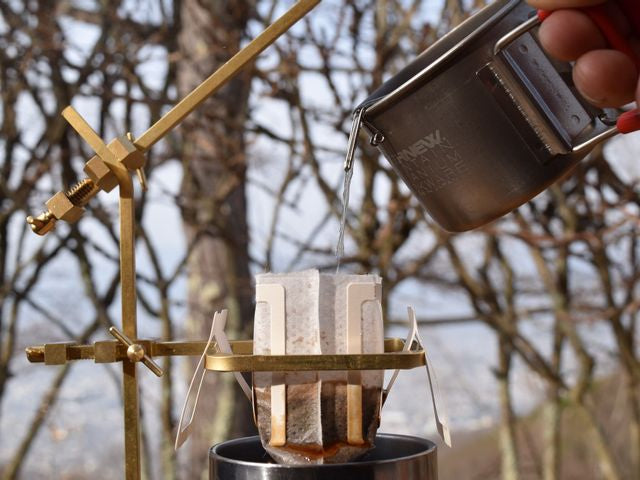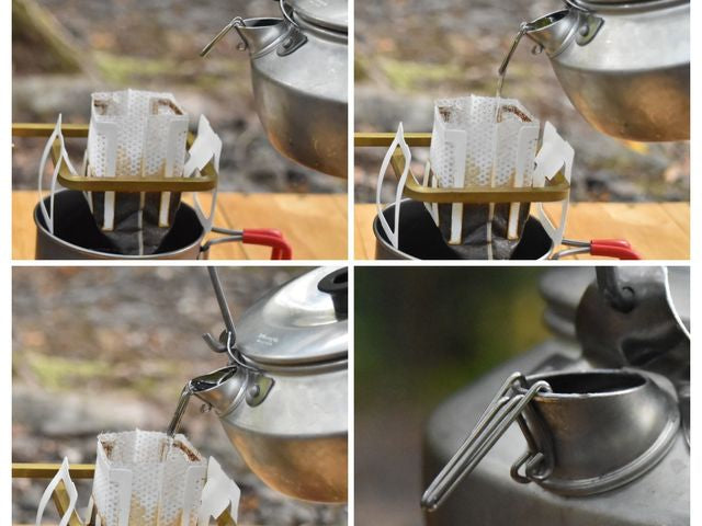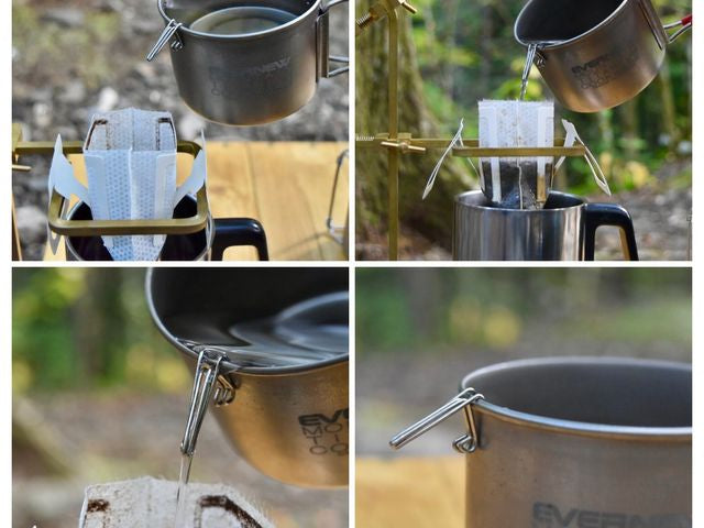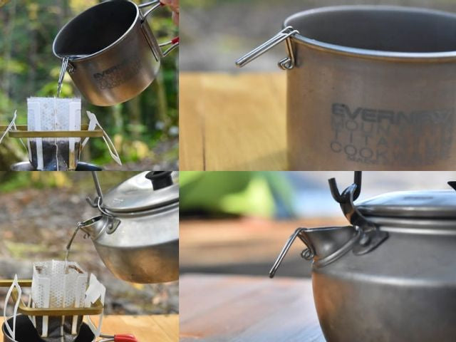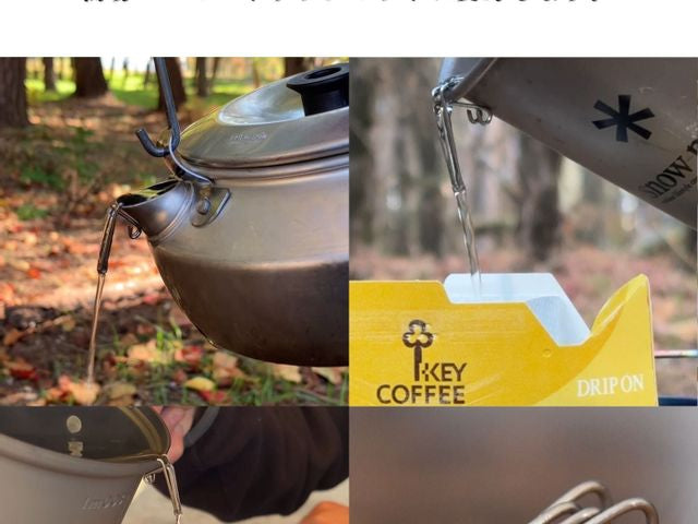 普段使っているケトル、チタンマグ、ソロ用クッカーが簡易コーヒードリップポットに!道具の軽量化が実現します!
