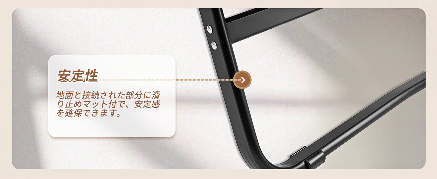 座面角度を4段階に調整可能。リラックスや読書、仮眠などシーンに応じて快適なポジションを選べます。