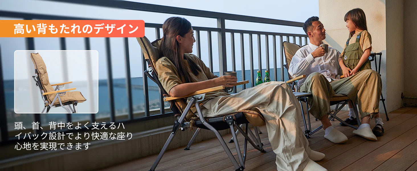 アルミ合金フレームと滑り止め加工で高い安定性を確保。耐荷重は120kgで、アウトドアでも安心して使用できます。