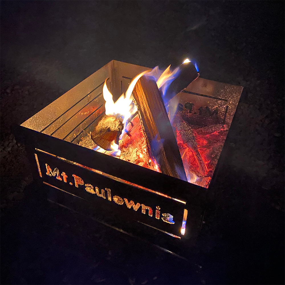 A bonfire pit for outdoor enthusiasts, the Mt. Paulownia rugged pit. Made of iron/black iron, this bonfire pit has a square shape and a simple and stylish design. It is assembled and comes with a storage bag, making it easy to carry.