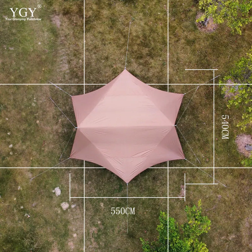 YGY Tent Tarp Hexa Tarp 150D Oxford Fabric Black PU Coating 5000mm W/R UPF50 8-10 Person 540-550cm