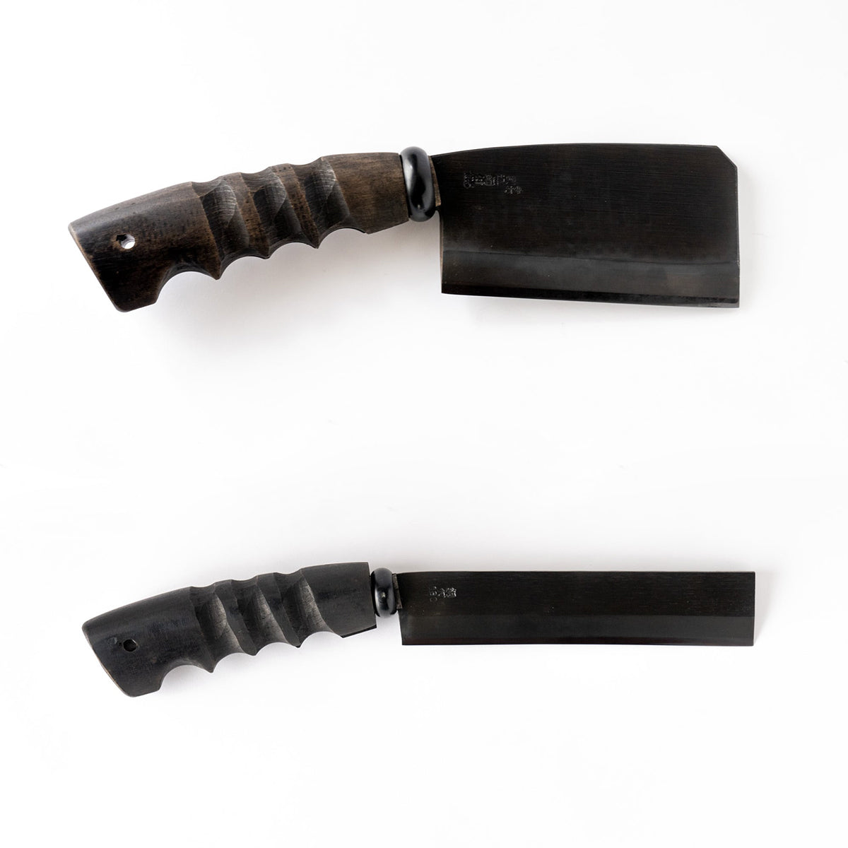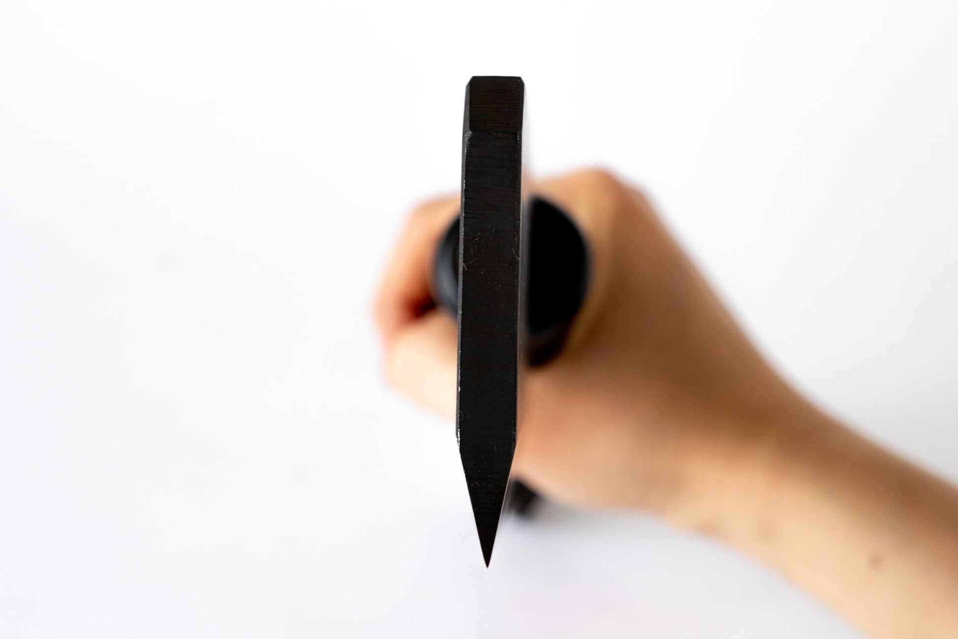 黒染めは刃付け後に施すことで、切れ味を損なわずに刃先まで漆黒に。膜厚1ミクロンの酸化鉄皮膜が、機能美と耐久性を両立します。
