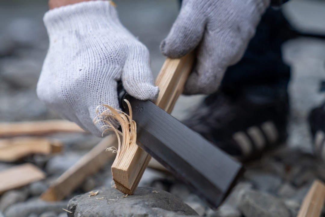 ■ 太型ナタ:パワフルに薪を割る