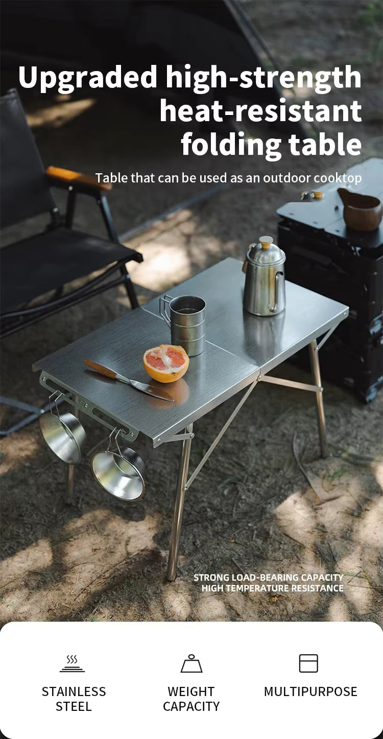 SHINETRIP ステンレス 耐熱 折りたたみキャンプテーブル(収納バッグ付)A451-T00