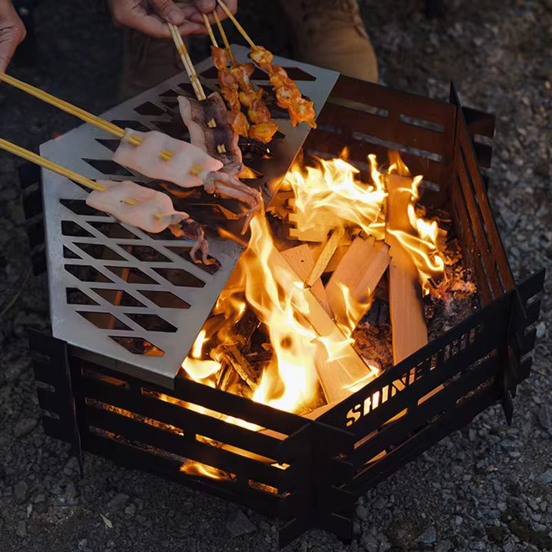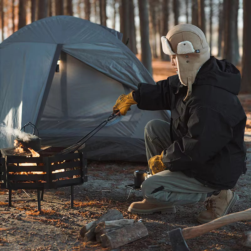 焚き火まわりの「作業台」「焼き網」「火ばさみ」「地面保護」をまとめて揃える4点セット。設営後すぐに調理と焚き火管理まで一気に整い、ソロ〜少人数の焚き火時間を快適にします。耐久性の高い金属パーツと耐熱クロスで、キャンプはもちろん庭先の焚き火にもおすすめです。