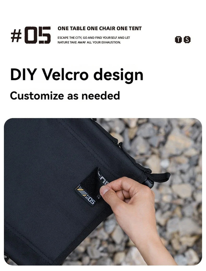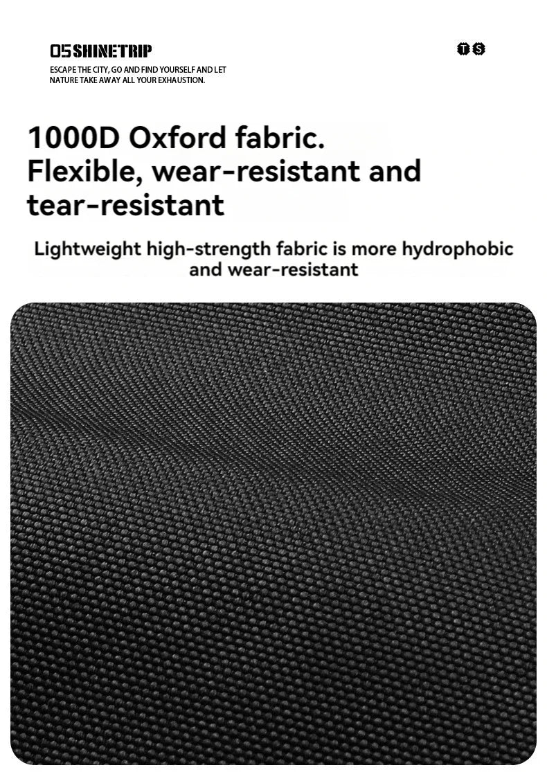 天板にはダブルレイヤー構造の1000D耐裂オックスフォード生地を採用し、軽量ながら高い耐久性を確保。フレームにはアルミ合金を使用し、安定感と携行性を両立しています。