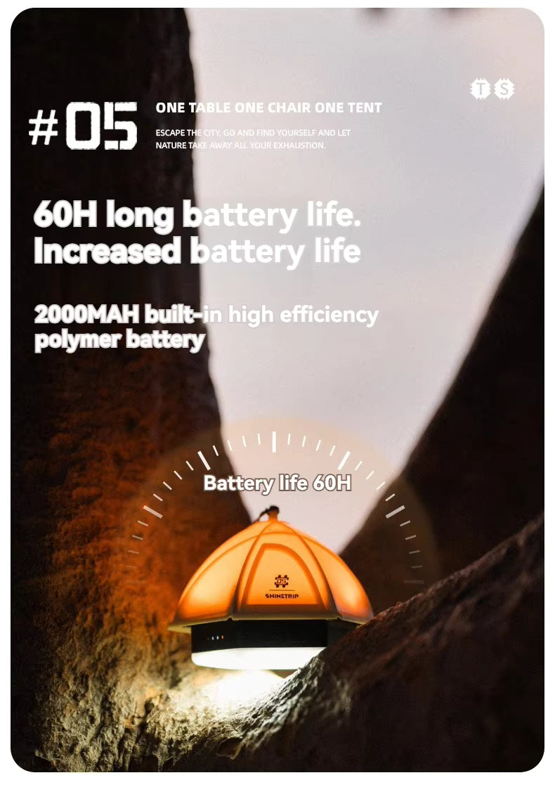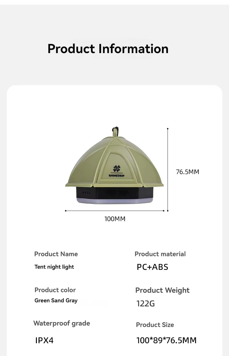 山趣(ShineTrip) ST-05シリーズ テント ナイトライト IPX4(グリーン/サンド/グレー)