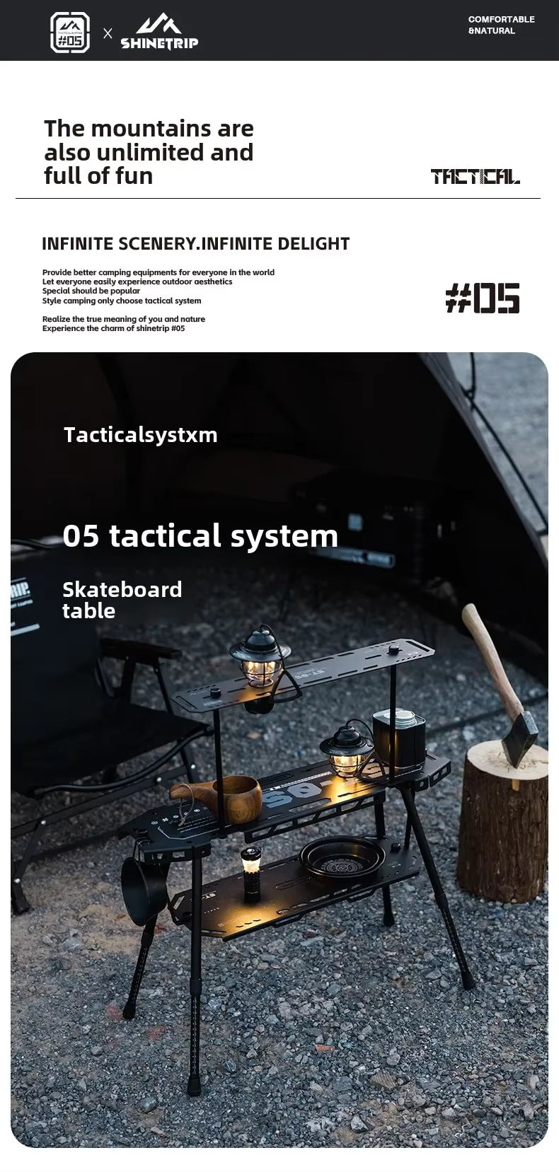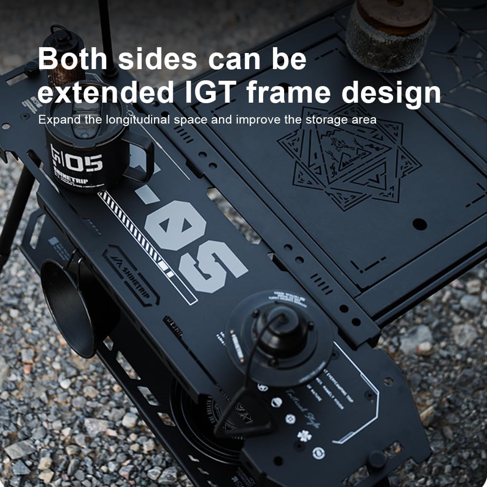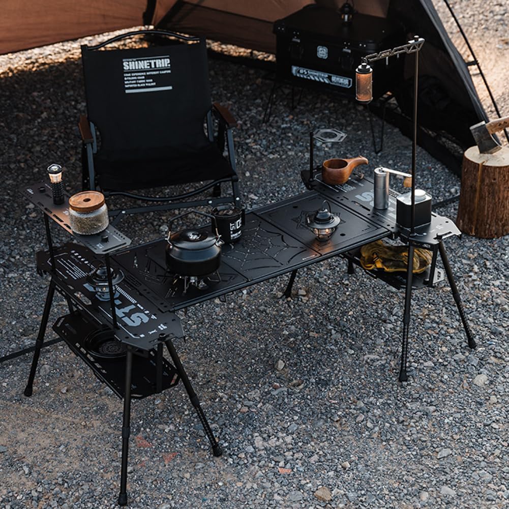 キャンプで「作業台が狭い」「ギアが散らかる」「IGT拡張したいけど、ただ長いだけだと置き場がない」という悩みを解決するのが、SHINETRIP #05シリーズ タクティカル スケートボードテーブル IGTフレームセット。