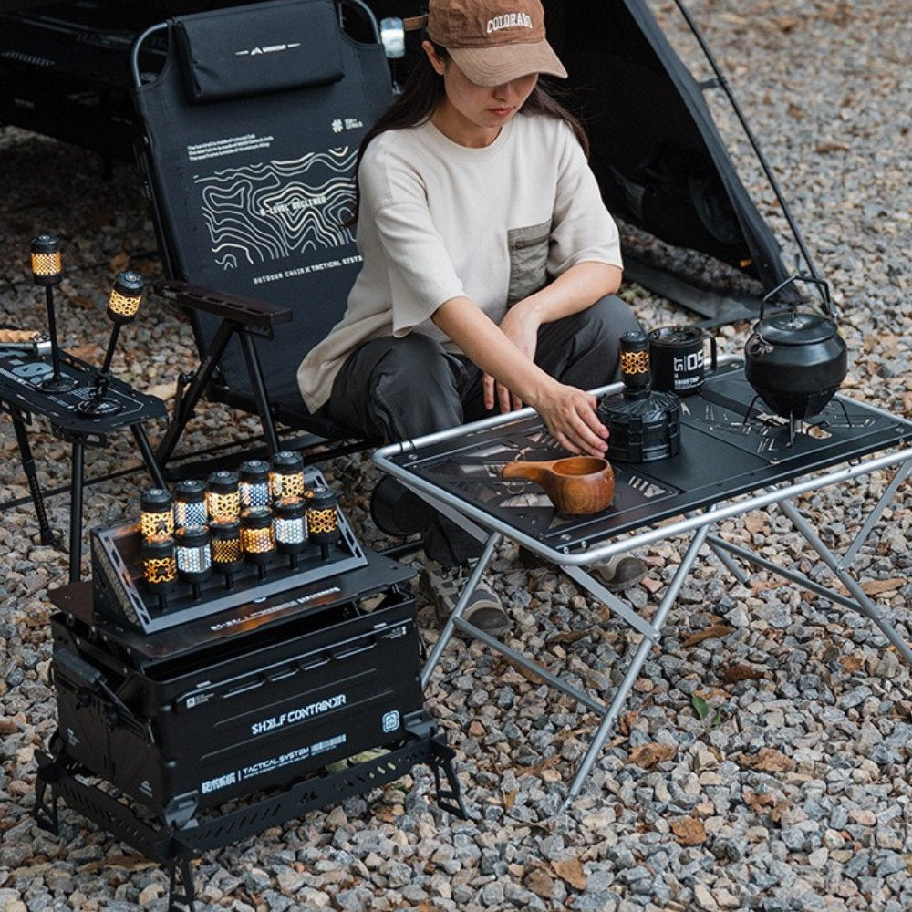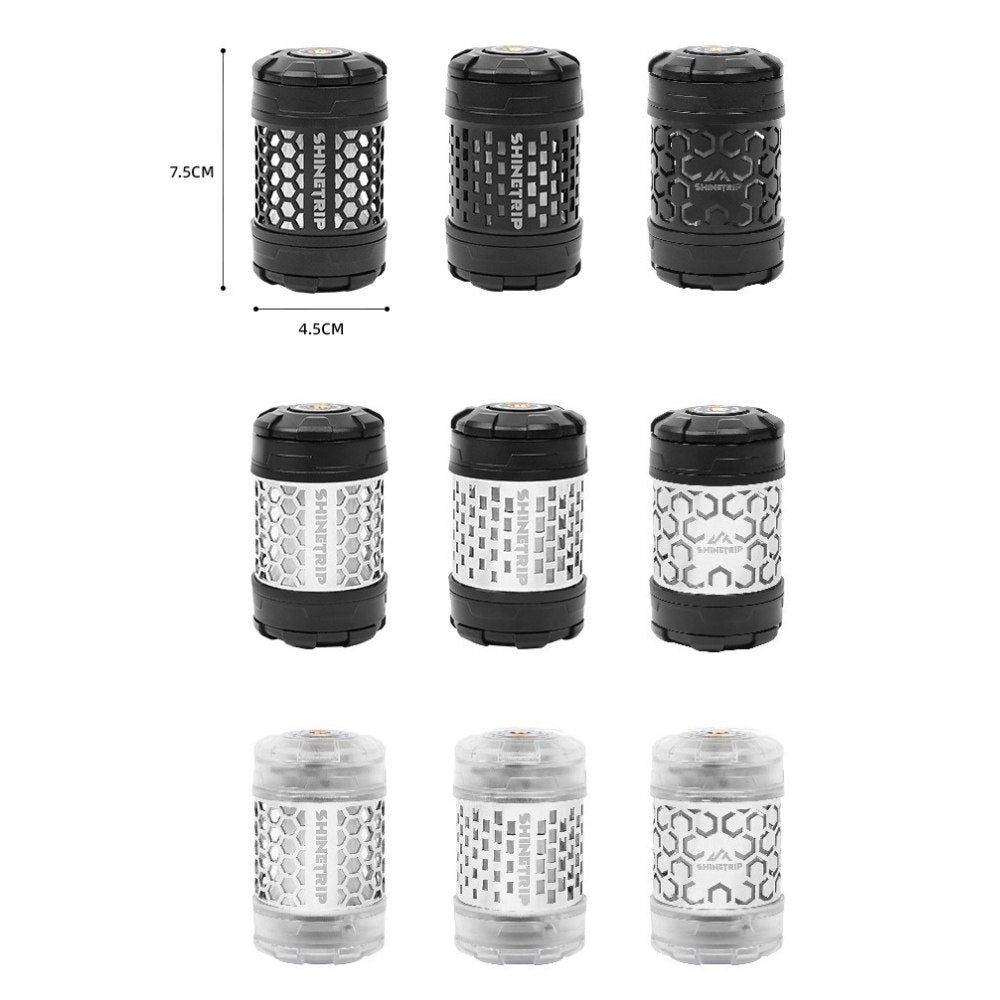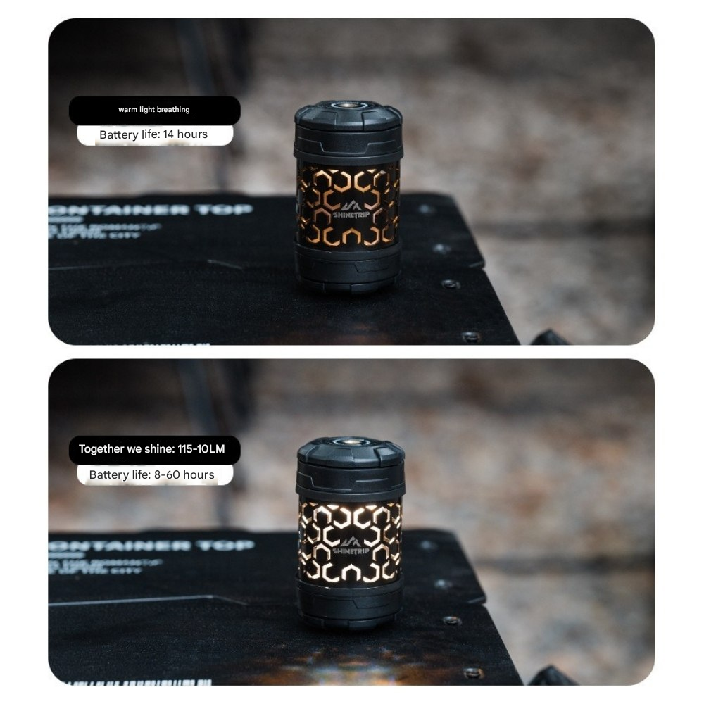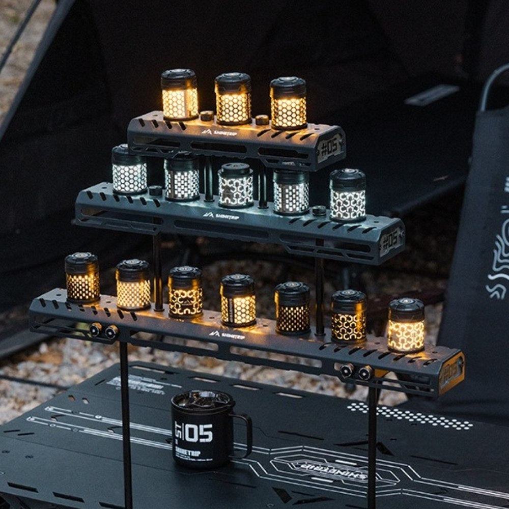 回転ギミックを備えたコンパクトライトユニット。指先で回して楽しめるデザインで、キャンプサイトの雰囲気作りやテーブル周りのアクセントに最適です。底面マグネットで金属面に固定でき、1/4インチネジ穴によりスタンドや各種アタッチメントへの拡張も可能。暖色/寒色のデュアル光源、4段階調光+長押し無段階調光に対応し、シーンに合わせた光量調整ができます。Type-C充電、1000mAh(18350)バッテリー内蔵。
