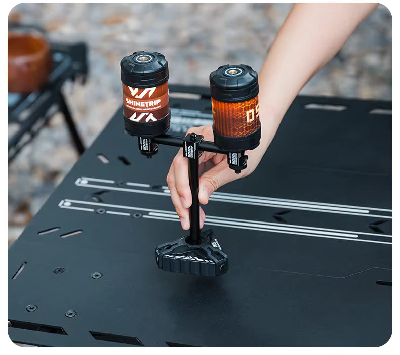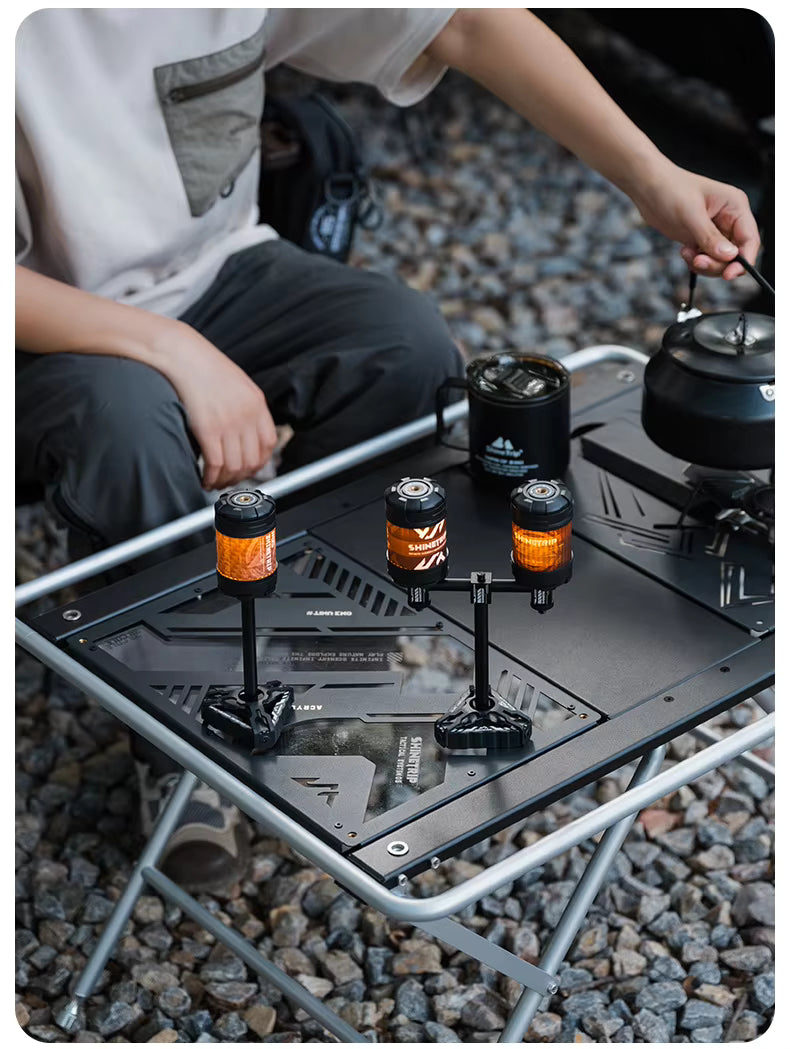 軽量なアルミ合金製で、持ち運びしやすく、設営や撤収の負担を増やしにくいのが特長。サイトではキャンドルや小型ライトを“ちょうど良い位置”に置けるため、食事・作業・リラックスタイムの快適性が上がります。