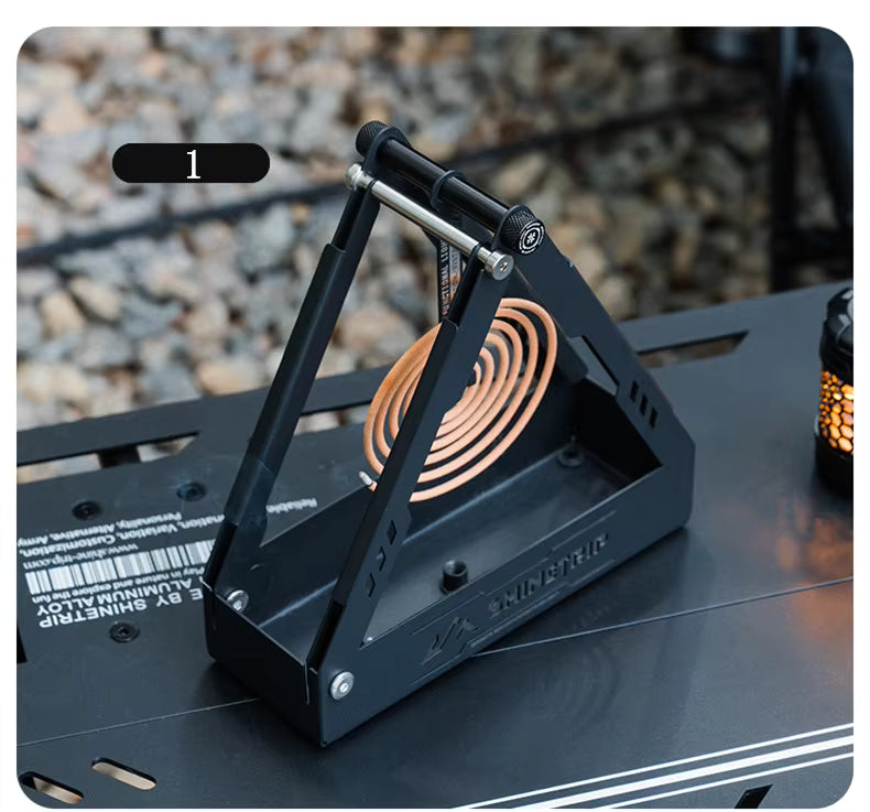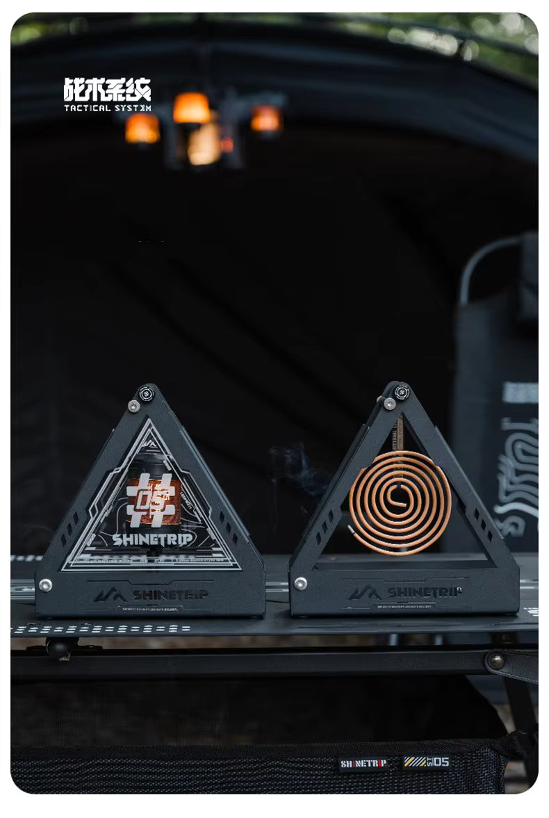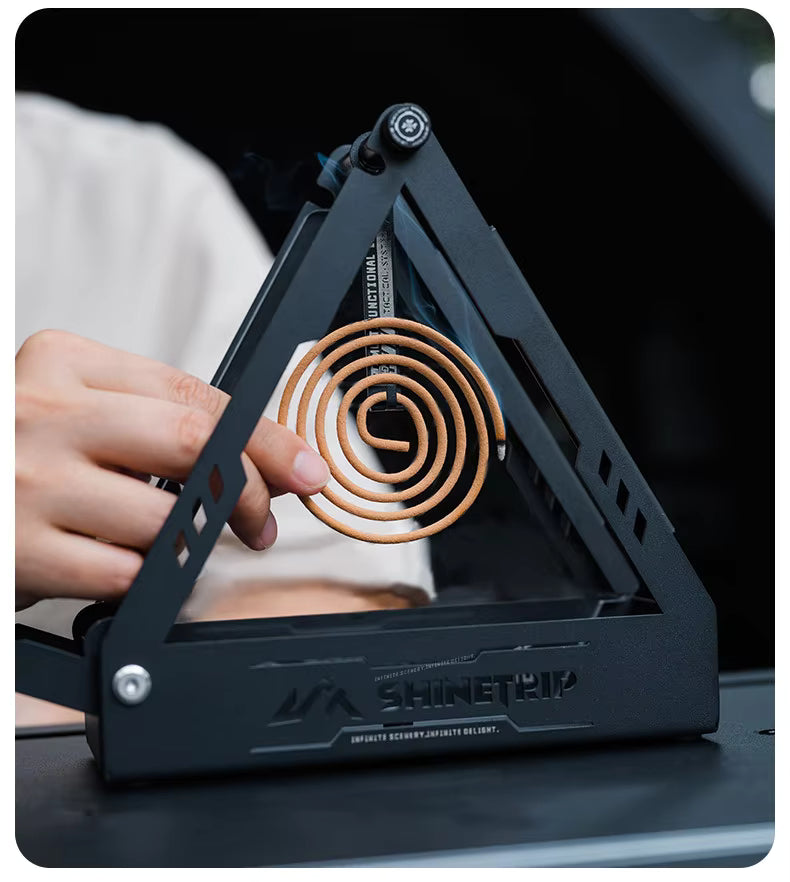 夜のキャンプサイトで「ランタンを置くだけでは雰囲気が出ない」「蚊取り線香や小物もスタイリッシュに演出したい」——