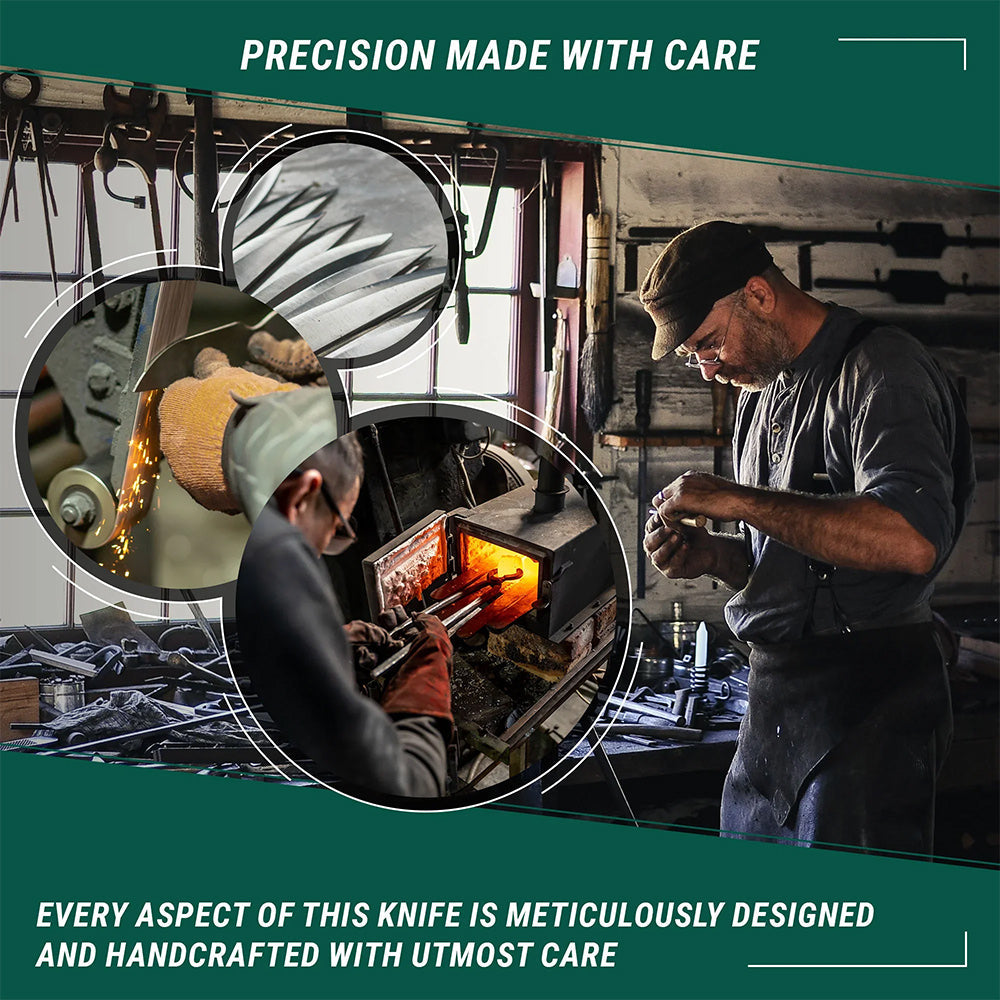 BeaverCraftの真新しいBSH5コンパクトブッシュクラフトナイフで武装した手つかずの荒野を受け入れてください-並外れた職人技と揺るぎない信頼性の証です。細部にまでこだわって作られたこの頑丈で鋭いナイフは、耐久性と汎用性の縮図です。BSH5の中心には、1066-58HRの驚くべき硬度を誇る60高炭素鋼から鍛造された手ごわいブレードがあります。この並外れたスチールは、最も過酷な条件下でもエッジの鋭さを維持し、すべてのアウトドア追求にとって信頼できるコンパニオンになります。ブレードを要素から保護するために、錆や腐食から効果的に保護するなめらかな黒色酸化物コーティングであるブルーイング技術を適用しました。BSH5が前任者と一線を画しているのは、中空研削タイプの研ぎを採用し、完璧な精度と切削性能を可能にしていることです。この驚くべき機能は、そのコンパクトな寸法と相まって、このナイフをポータブルパワーハウスに変え、あなたの道に来るどんなブッシュクラフトの挑戦にも取り組む準備ができています。木彫り、キノコ狩り、スリリングな屋外遠征に乗り出すなど、BSH5は卓越性に妥協することのない信頼できる仲間です。この固定刃ナイフは、フルタング構造を誇り、並外れた強度と弾力性を提供します。ハンドル素材のヨーロピアンウォールナットは、長時間の使用でも最適なグリップと快適さを提供しながら、優雅さを醸し出しています。ハンドルスケールは2つのリベットで固定されており、交換できます。その並外れた機能を補完するために、BSH5ブッシュクラフトナイフには、固定サスペンションシステムを備えた本革シースが付属しており、簡単で安全な持ち運びが可能です。便利なスナップクロージャーにより、ナイフはいつでも簡単にアクセスできます。さらに、BSH5は、フリントロッドを叩くことで火花を発生させることができる印象的な裏側を備えており、キャンプやハイキングの冒険中に簡単に発火できます。