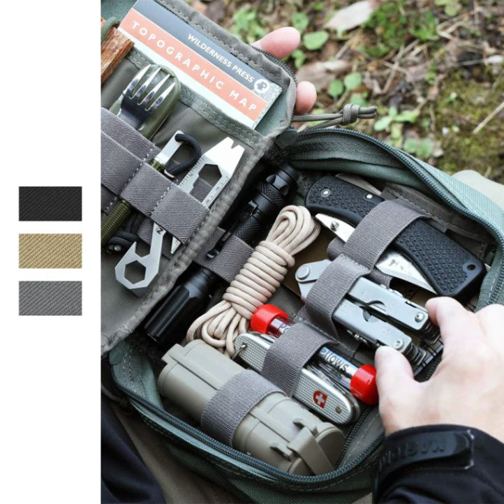 耐久性に優れた1050デニールナイロンを採用し、アウトドアから日常携行まで安心して使用可能。ハンドル付きでバッグから素早く取り出せる、実用性の高いEDCポーチです。