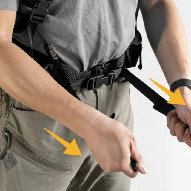アジャスター部にはシートベルトと同様の強度と柔軟性を持つ素材を採用し、スライド構造で素早く締め付け調整が可能です。付属の1インチUシェイプクリップを使用すれば、Super Falconなどのバックパックに取り付けて使用することもでき、装備拡張や荷重分散に役立つ機能性の高いウエストパッドです。