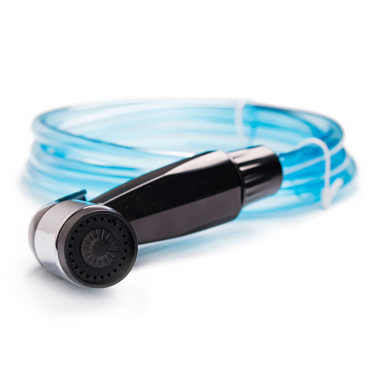 本体の浄水システム(活性炭フィルター+中空糸膜フィルター)と組み合わせることで、ろ過された水を使用可能。水の味や臭いの改善にも対応し、より快適な使用環境を提供します。ホース付きで取り回しも良く、スプレーノズルにより水量の調整も可能です。